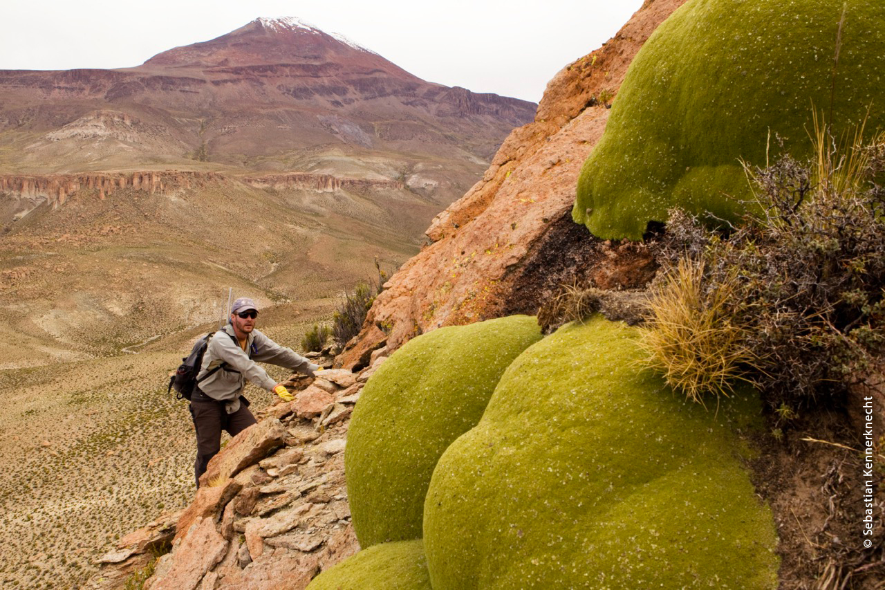 Tras cada registro del gato andino hay un arduo trabajo de campo, con largas caminatas y recorridos por laderas empinadas y sectores rocosos de difícil acceso. © Sebastian Kennerknecht